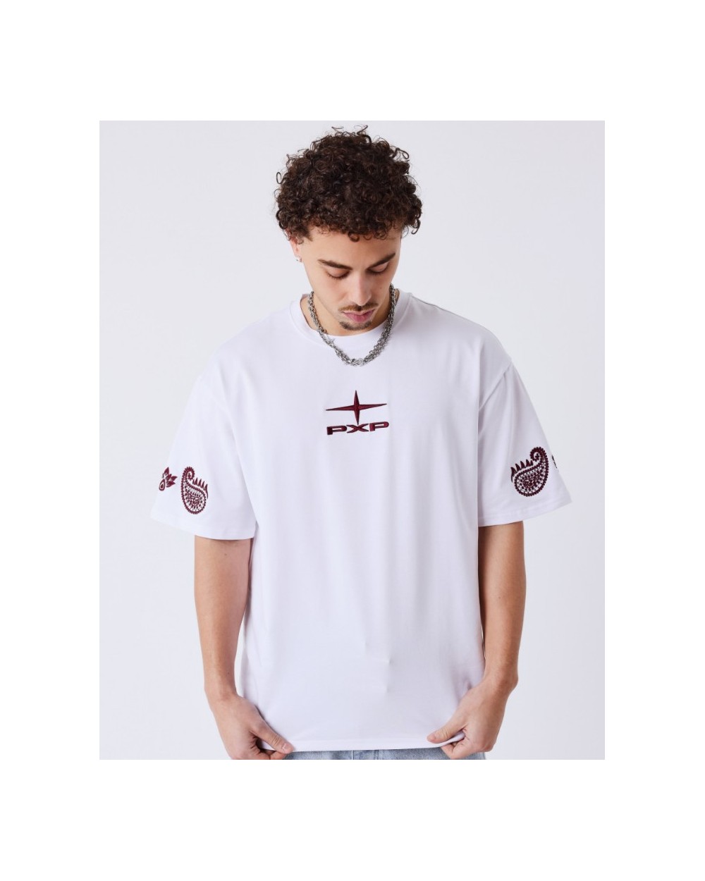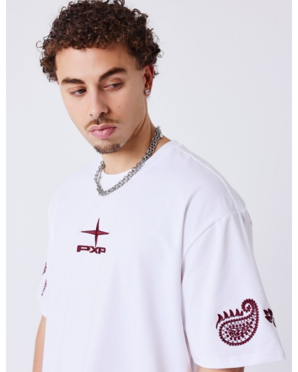Camiseta Blanca/Granate Bordado-Project X Paris