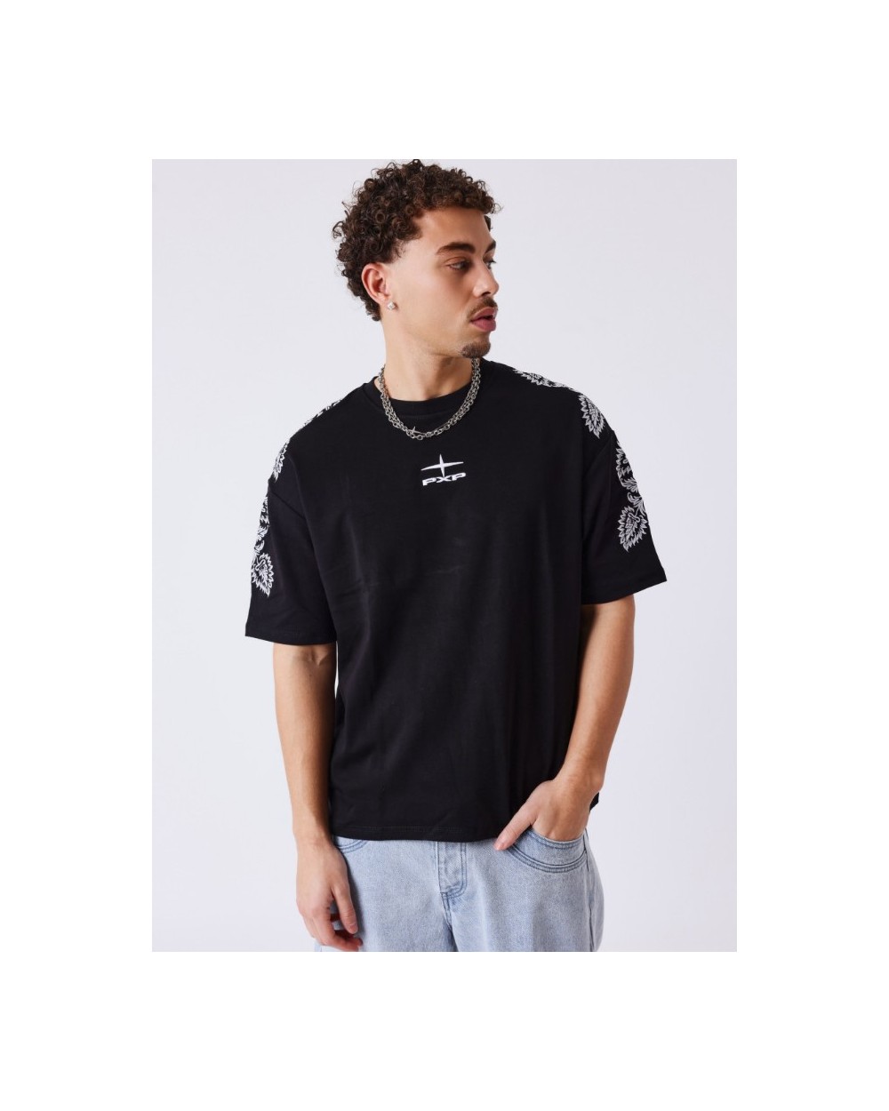Camiseta Negra Con Hojas En Mangas-Project X Paris