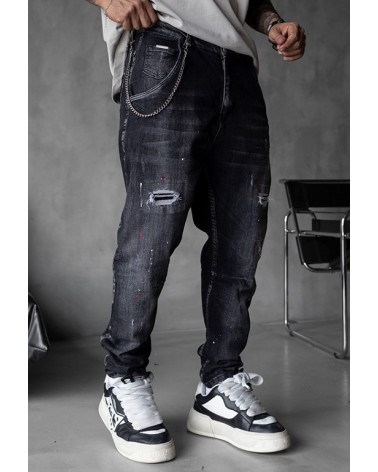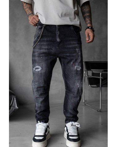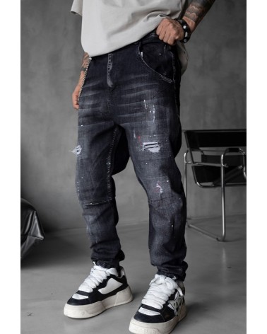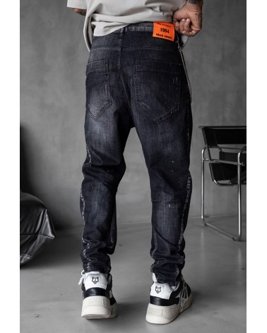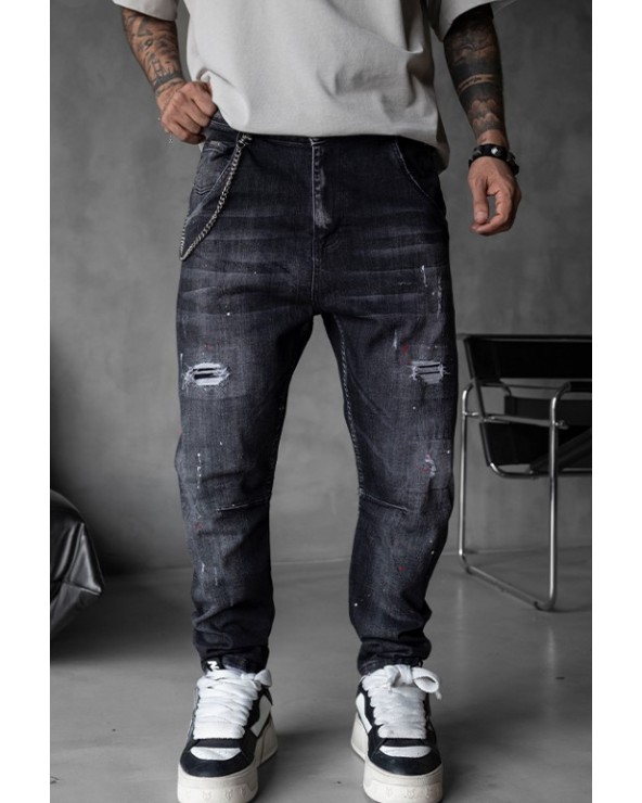 Eleva tu estilo diario con estos jeans negros ajustados de Black Island . Con detalles rasgados, salpicaduras de pintura aplicadas a mano y una textura lavada de inspiración vintage, esta prenda ofrece una estética urbana audaz y auténtica.