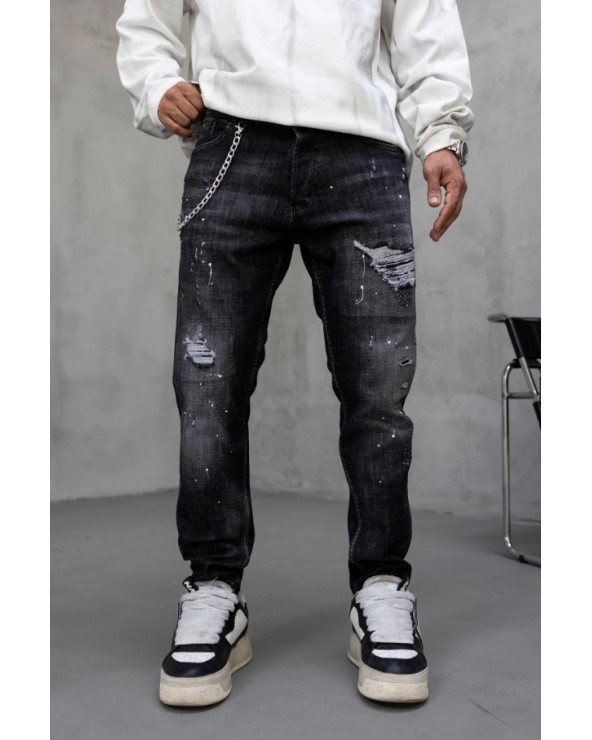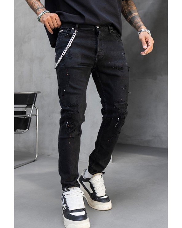 Eleva tu estilo diario con estos jeans negros ajustados de Black Island . Con detalles rasgados, salpicaduras de pintura aplicadas a mano y una...
